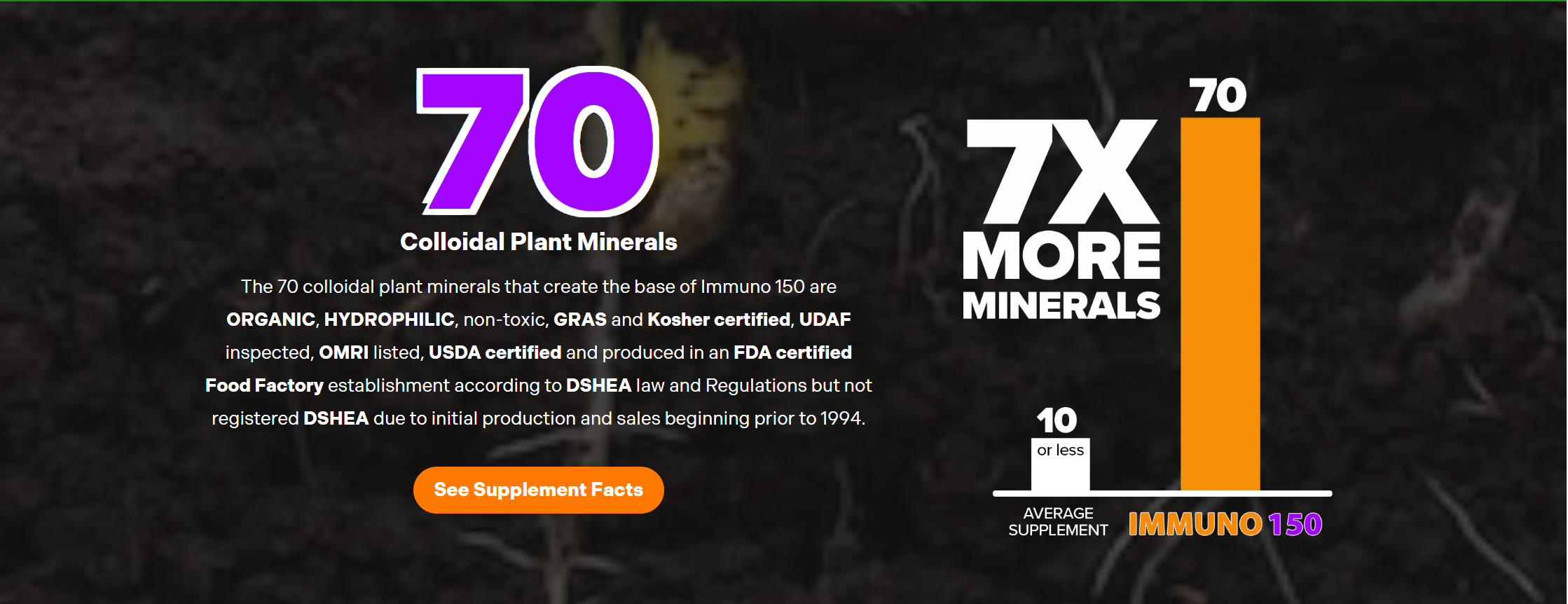 Immuno 150 – Immune Support with 70 Plant Minerals | 150 Veggie Capsules